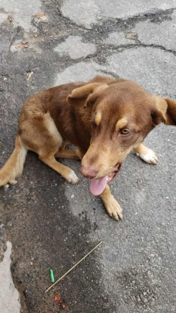Chamo ele de chocolate, ele não é meu, está a procura de um dono que possa encher ele de carinho. Estou alimentando ele já fazem 15 dias, eu tenho 3 cães de porte pequeno e não posso mais assumir essa responsabilidade, quem adotar eu garanto a castração!