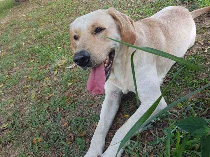Labrador adulto não castrado ainda, gosta muito de brincar e passear, obedece bem e é manso.