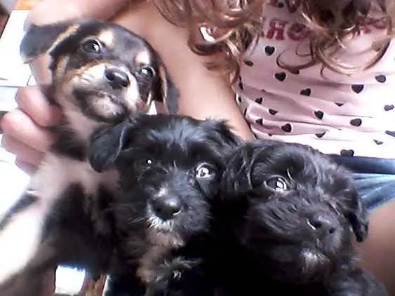 Três filhotes , um macho preto e marrom