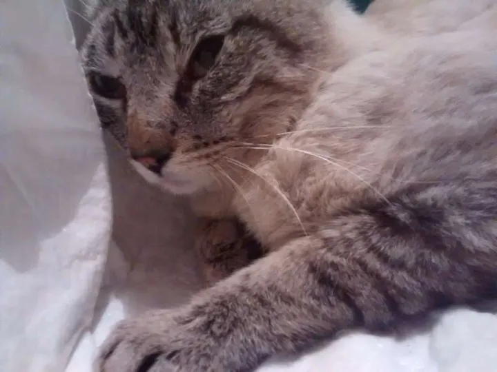 Gato encontrado na minha rua para adoção. Não posso ficar com ele pois já tenho vários cachorros e um deles não se dá bem com outros animais. Ele é bem dócil e querido! Encontrei ele atropelado, cuidei, levei no veterinário, ele se recuperou bem e precisa de uma família.