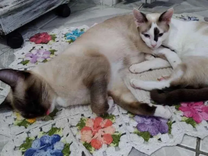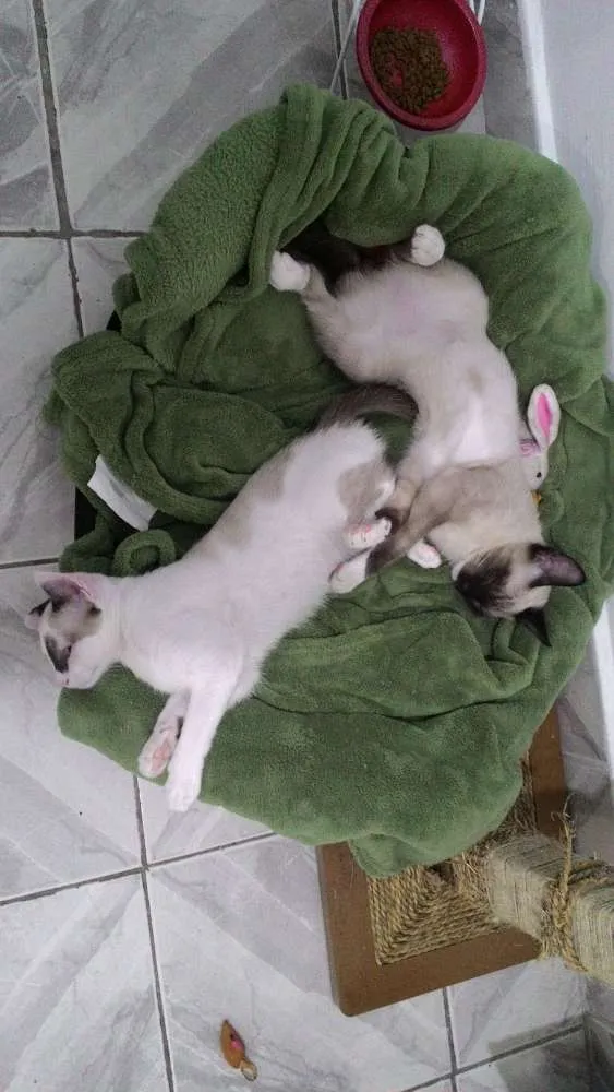 Esses irmãozinhos sempre viveram juntos e não gostaríamos de separá-los. Foram encontrados em 21/04/17 na Praia Grande. Agora moram em Mauá-SP, e como já temos outros 6 gatos e 2 cachorros não estamos dando conta deles. São muito carinhosos e brincalhões.