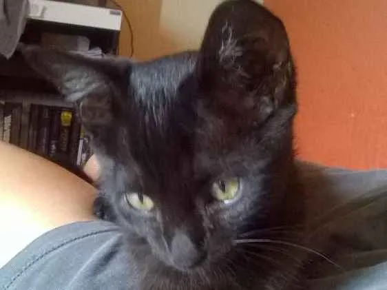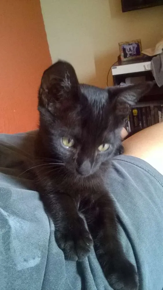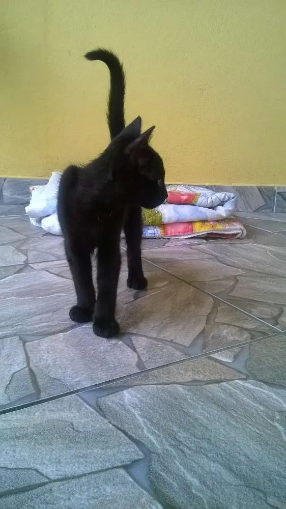 Gatinho dócil, brincalhão, super carinhoso, procurando um lar amoroso. Ainda é bem pequenino, no máximo 2 meses, com os olhos verdes.