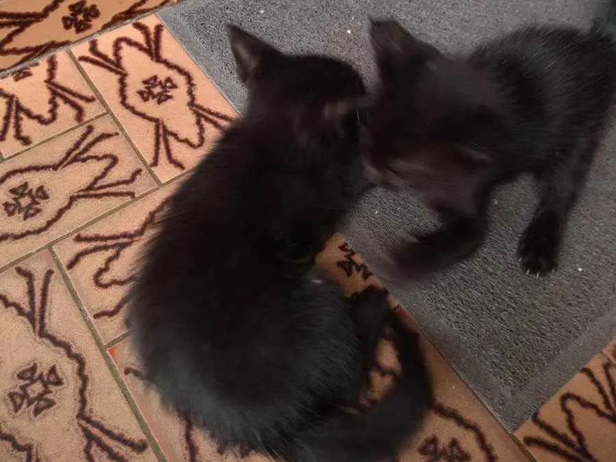 São dois gatinhos machos eles tem 1 mês e 14 dias, já estão comendo ração