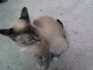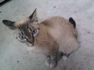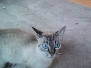 Não sei muita coisa sobre gatos, então não consegui descobrir se o animal é macho ou fêmea. Aparenta ter menos de 1 ano, por ser um pouco menor que os gatos adultos que conheço. É muito dócil, estou dando comida para ele e só não o levo para casa porque meus pais não deixam :(. Está bem magro e miando muito, precisa de alguém que o adote e dê muito amor e carinho.