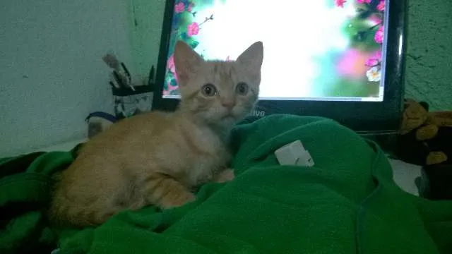 3 filhotes, com quase dois meses, 2 femeas laranjas e 1 macho preto.