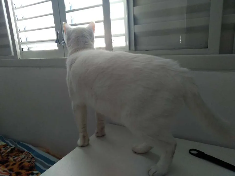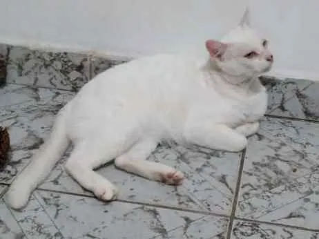 Gato todo branco e fofo. Pêlo macio. Deve ter uns seis anos, castrado, saudável, adora ficar perto da gente e ganhar carinho. Mia um pouco, pq não gosta muito de ficar sozinho.