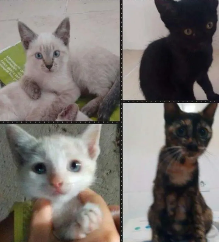 A gatinha é muito dócil e convive com crianças. Os filhotinhos estão com quase dois meses.