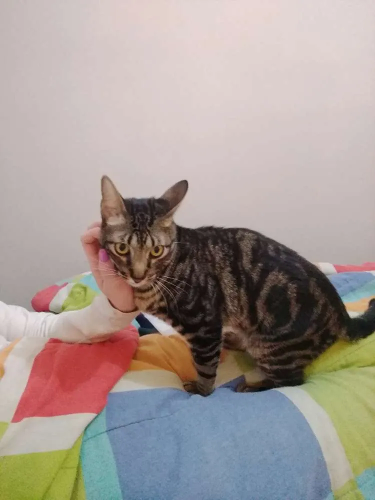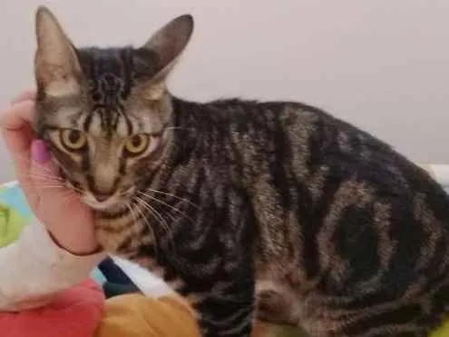 Lindo gato de olho verde, rajado, mistura com raça bengal. É muito carinhoso, tem 1 ano, é vacinado, castrado,vermifugado. Estou doando por questão de saúde e espaço. Será doado somente para pessoa responsável e que more em ambiente seguro e telado.