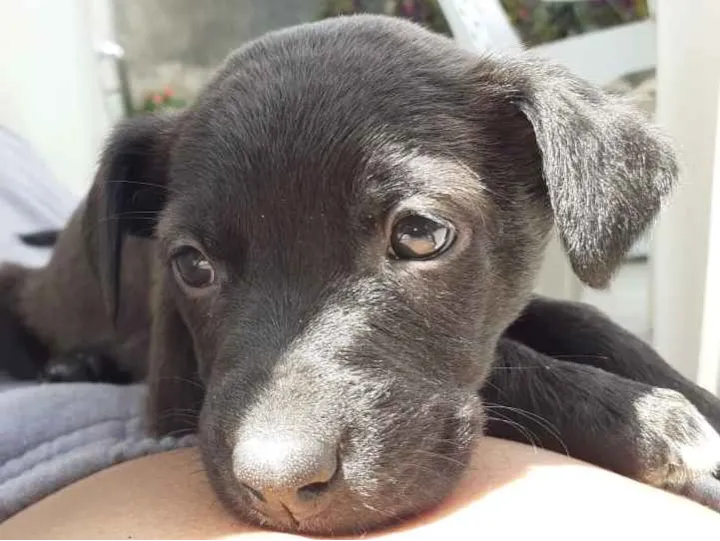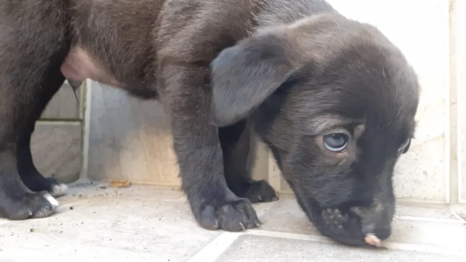 Cor preto, porte médio grande, uma fêmea.