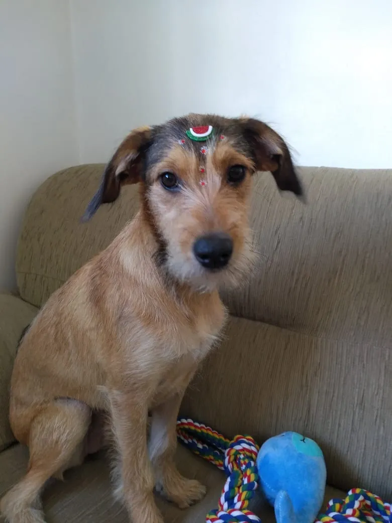 Cachorrinha resgatada da rua, castrada, vacina, vermifugada. Não se adapta ao apto e a ficar sozinha.