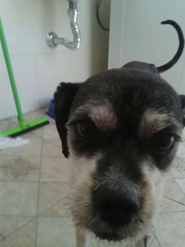 Kadu, foi resgatado na beira de um córrego em Itaquera, estava só pele e osso. Agora está lindo e saudável, tomou todas as vacinas e tem e um temperamento dócil e tranquilo. Está tosado, mas o seu pelo é liso e comprido.