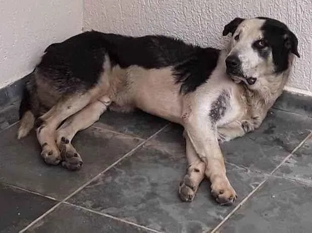Gostaria de divulgar esse cachorro que está à cerca de 10 dias na porta de casa, no Conjunto São Sebastião. Estou alimentando ele mas não tenho como resgatá-lo pois já tenho 5 gatos adotados. Ele precisa de muita ajuda pois aparenta estar bem debilitado. Agradeço.
