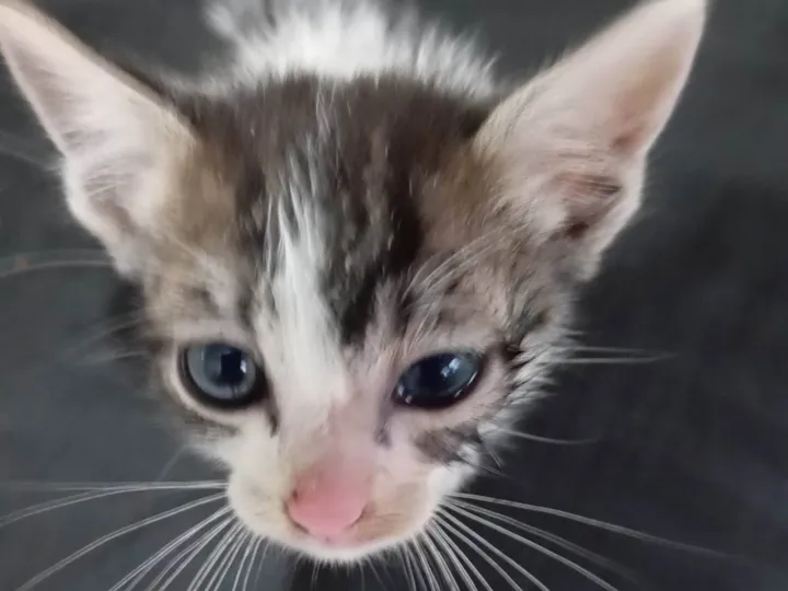Estava indo buscar meu filho na creche e encontrei ela toda encolhido na rua, estou dando um lar temporário pra ela mas tenho outro e ele está rosnando e batendo nela