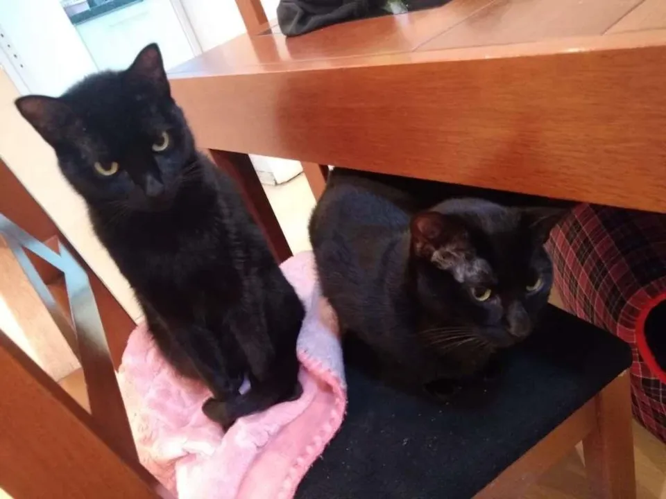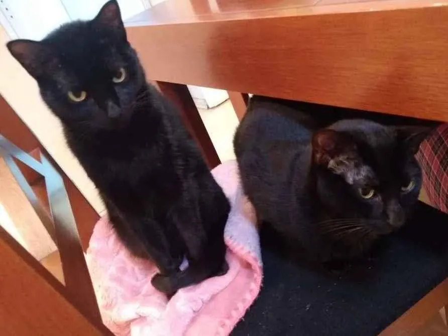 Encontrei na rua essas duas "panterinhas" com um mês de vida. Resgatei afim de encontrar um dono, mas me apeguei e fui ficando com eles. Castrei, vacinei, estão lindos e saudáveis.