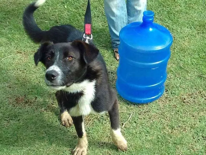 Essa moça apareceu aqui super debilitada, com uma ferida enorme e cheia de larvas. Aparentemente é castrada, anda bem com guia e só faz as necessidades quando saímos para passear.Infelizmente não posso ficar com ela. Não sei se foi abandonada ou se fugiu. Parece da raça foxhound americano, mas está judiada. Estamos a procura de seu dono ou de um novo lar.