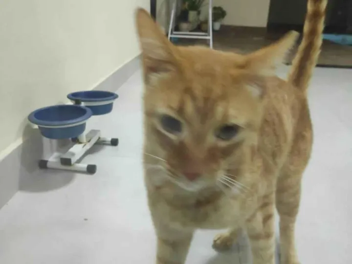 Apareceu em nossa residência esta gatinho de cor amarela com branca muito carinhoso e sentimental, quer estar sempre em volta das pessoas, porém temos dois cães não tolerantes com gatos em casa e para nós está difícil deixar ele aqui, procuramos alguém que queira adotar este parceirinho que provavelmente foi abandonado aqui na mata do condomínio.