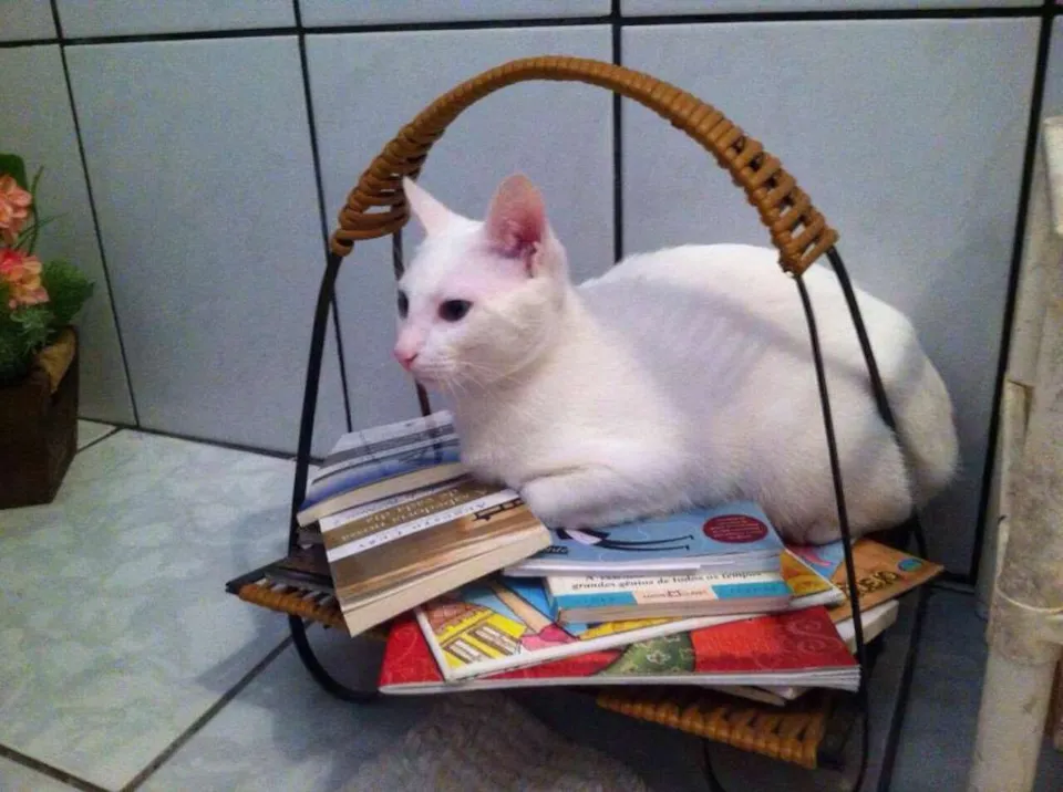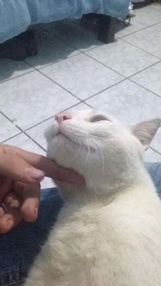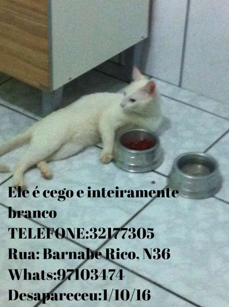 Ele é inteiramente Branco, possui os olhos azuis normais porem ele é cego dos dois olhos mas é quase imperceptível, fica dando voltas entorno do próprio corpo é castrado.
