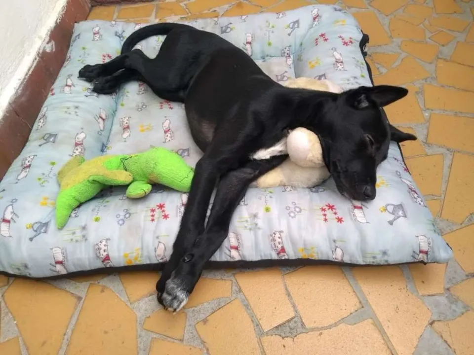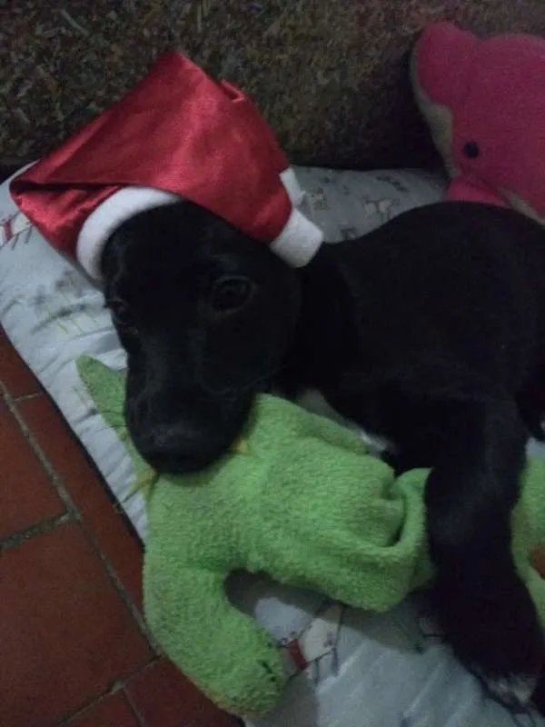 Fui resgatada com os meus irmãos em um matagal em Juquitiba com a minha mãe, que foi adotada e castrada.