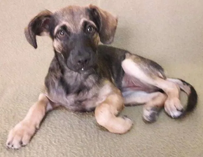 Cadelinha com mais ou menos 2 meses (ou 3) achada na rua, acho que ela tem essa idade porque seus dentinhos ainda não nasceram todos. Ela tem focinho preto e as costas também com o resto do corpo mesclando preto e marrom. Dorminhoca, brincalhona e meiga.