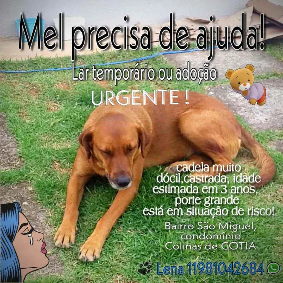 Muito dócil! Castrada, vermifugada. Se encontra em situação de risco.