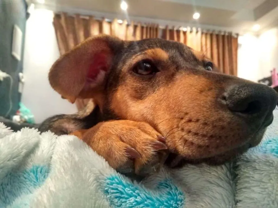 Filhote encontrada em terreno baldio, estava doente e repleta de pulgas...foi vermifugado e tomou medicamentos via oral para todos tipos de parasitas e faz uso de pepita contra pulga,carrapatos.