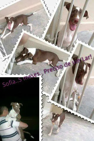 Sofia é uma vira-lata com Pitbul muito dócil, brincalhona, esperta e muito amorosa.