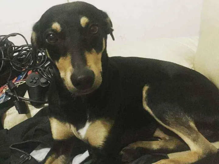 Cadela de médio porte, atende pelo nome de Kaya. Costumava sair de casa sem coleira e conhece bem a região, por isso, acredito que alguém a levou. A barriga é mais clara que o restante da pelagem do corpo. É muito esperta e independente.