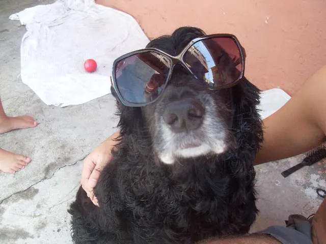 Cocker todo preto, sem rado, não é castrado, atende pelo nome de Panda super dócil e bonzinho. Tem 12 anos e apenas o fucinho um pouco branco de velhice.