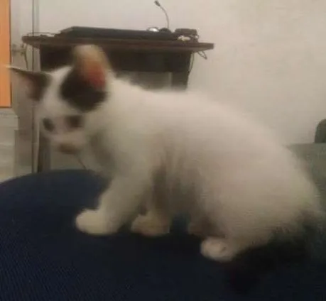 Possui dois meses e meio, usa areia e come ração normalmente. Muito brincalhona e arteira.