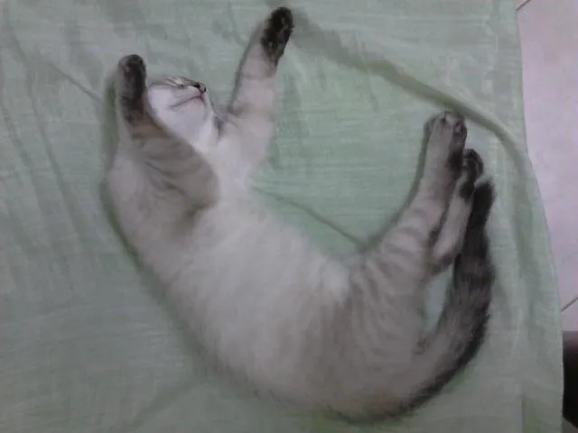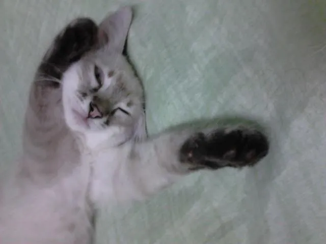 Gato de aproximadamente 2 meses e meio. Muito brincalhão, mas ao mesmo carinhoso, como pode ser visto nas fotos ele sempre procura estar perto de um humano para dormir.