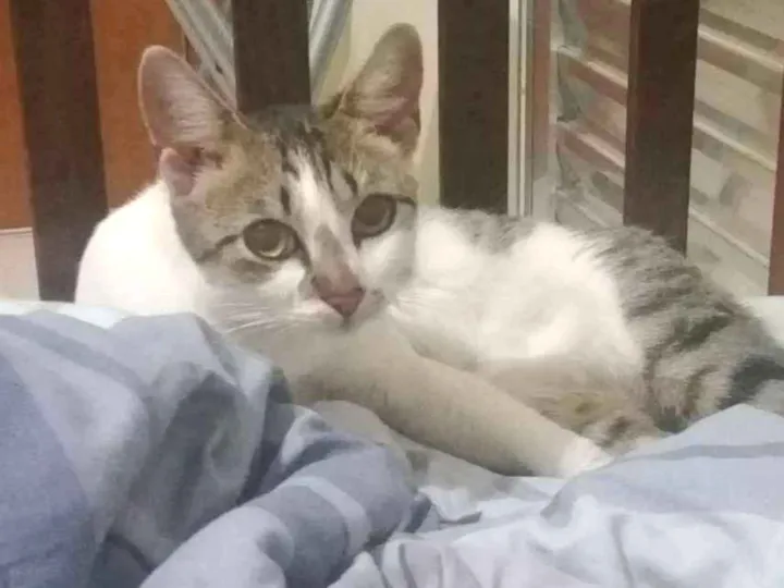 Elizabeth é filha de Alma, tem a barriga branca, é muito inteligente, abre portas e janelas, manhosa, comunicativa, se falar com ela, ela responde, principalmente aquele bom dia, já teve 2 ninhadas e está prenha de mais uma. Esta foi a única gatinha minhas que não consegui castrar ainda e os gatos machos invadiram meu quintal e a engravidaram antes que eu doasse os ultimos bebês que estavam amamentando... Ela é uma mãe maravilhosa, cuida bem de tudo, e esperamos encontrar um lar ideal para ela. Devo sair da casa alugada onde moro, pois os donos a pediram e vou morar de favor na quiti de um parente onde não cabem nem meus móveis, tão pouco meus 5 gatos.