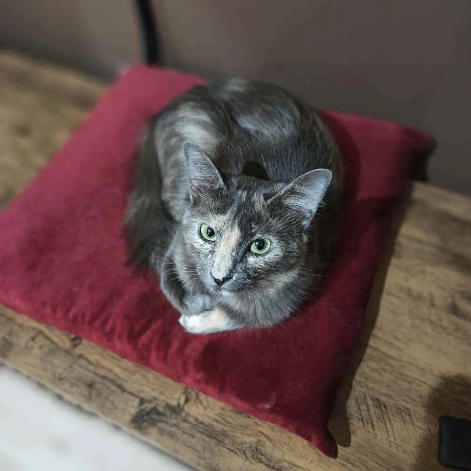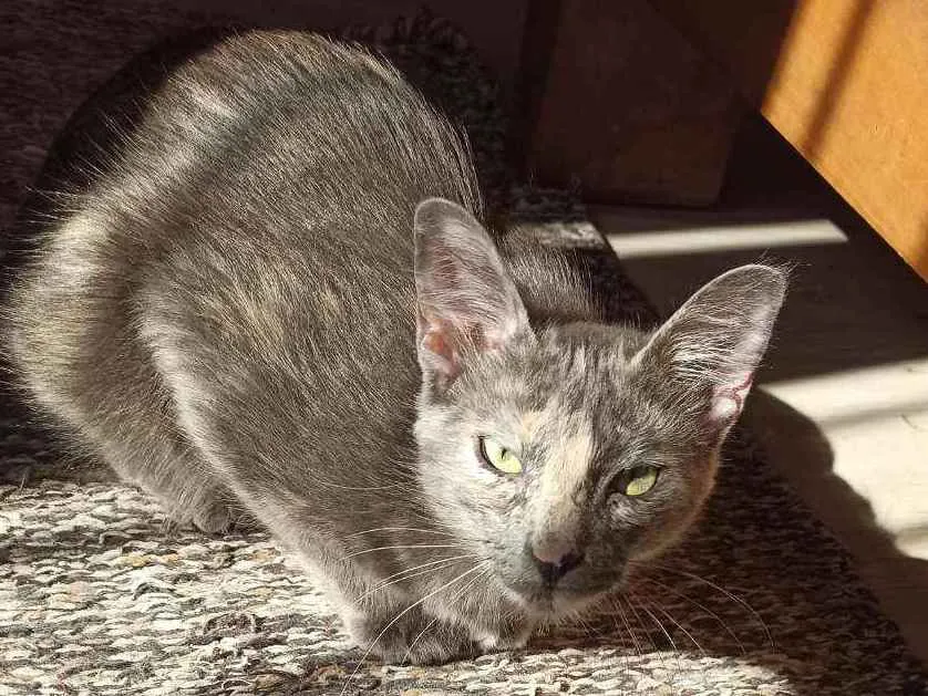 Gata resgatada. Castrada, vacinada, vermifugada. Convive muito bem com outros gatos, mas está aprendendo a ser carinhosa e amigável com pessoas. >.<