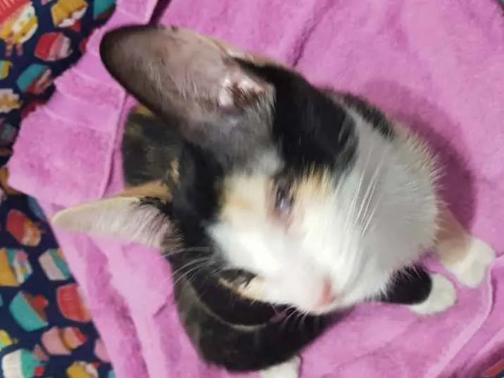 Olá, sou a Lua Cheia. Cai do telhado em uma noite chuvosa e fria com menos de 45 dias de vida. A dona da casa me acolheu e me deu abrigo. Agora sou castrada e procuro um lar para ficar. Tenho uma deficiência. Nasci com parcialmente cegueira congênita. Eu vejo pouca coisa, mas vejo. Consigo encontrar meu potinho de comida, minha caixinha de areia e meus brinquedos. E as vezes ainda corro atrás de mosca. ??
