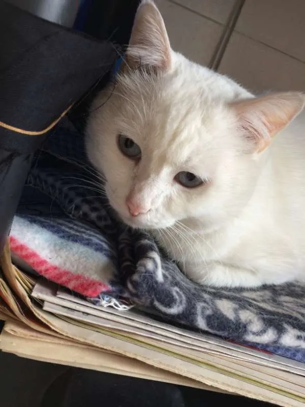 Gata fêmea, branca, olhos azuis, de grande porte, rabo curto. Vimos ela perto de casa prestes a dar cria e socorremos mas não temos condições de mantê-la conosco, ela e seus filhotes, pois já possuímos mais três gatos. A adoção é urgente, pois dentro de três ou quatro meses pretendemos sair do país definitivamente, e não poderemos levar todos os gatos. Alguém se interessaria ou poderia ajudar?