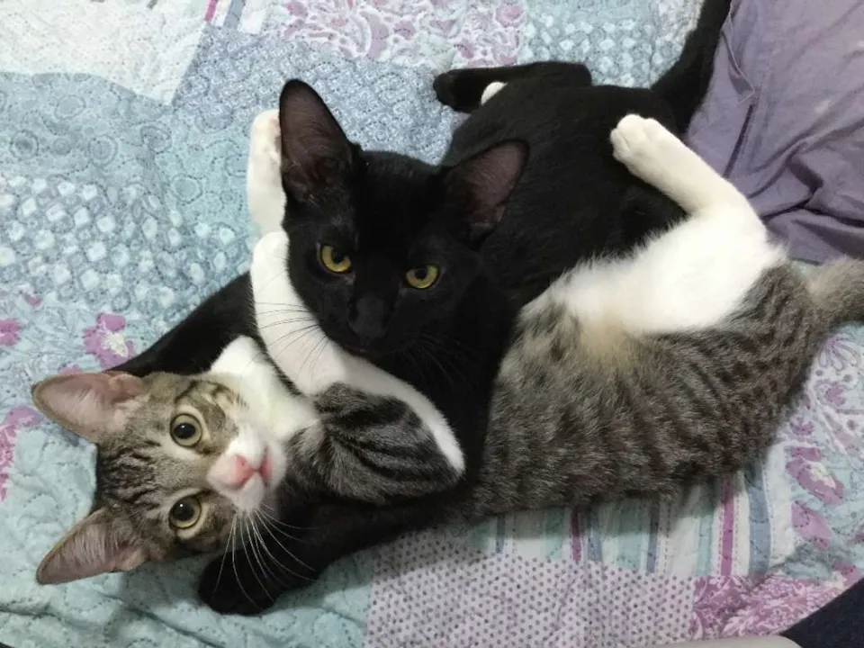 A história que se tem notícia é que o tutor da gata mãe se mudou e deixou os filhotes pra trás.