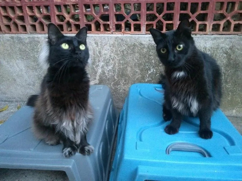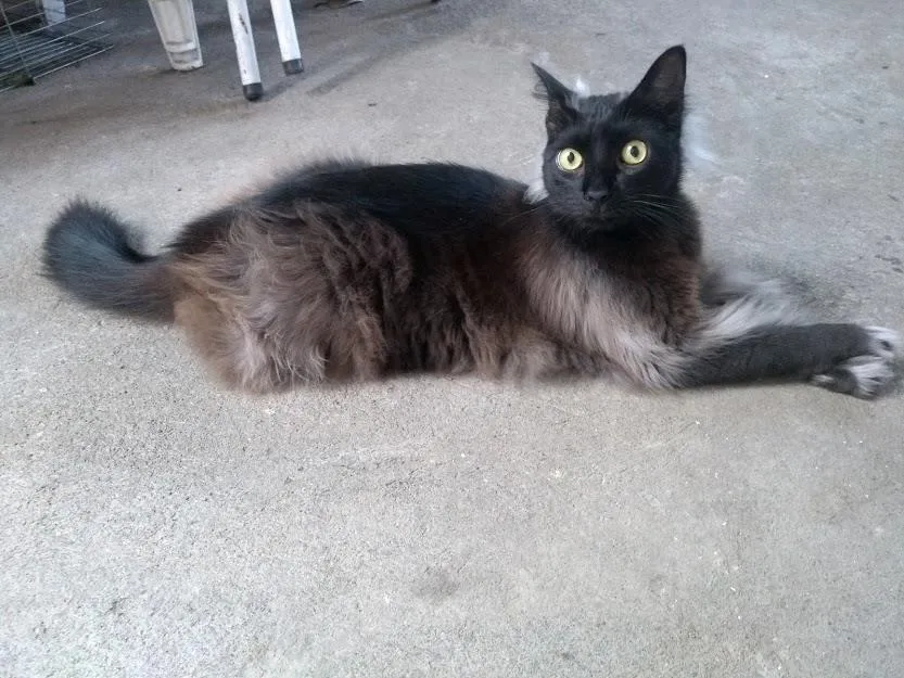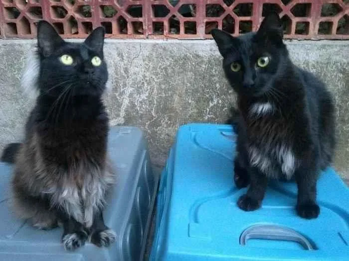 Somos irmãos, machos, mestiços de angorá, pelagem preta com cinza.