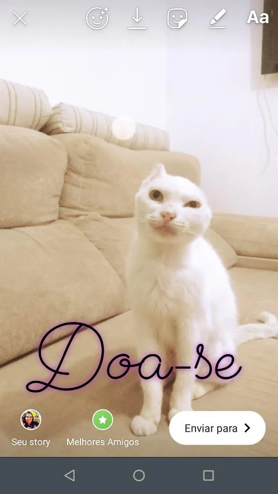 A Sol foi encontrada com câncer de pele e passou por uma delicada cirurgia, foi tratada com muito carinho e amor e agora está em busca de um lar cheio de amor. A Sol é muito dócil, carente, adora dormir nas pernas das pessoas quando estão sentadas e receber carinho.