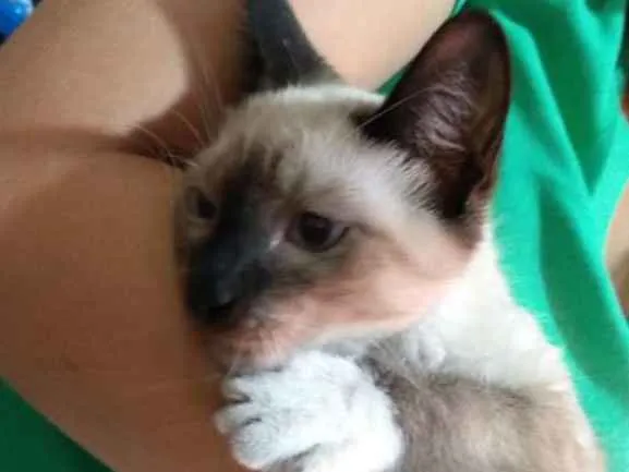 Este siamês estava nas ruas mas está sendo cuidado por uma tia para evitar que ele seja atropelado na rua. Ele é muito fofo e está aguardando um lar cheio de amor.
