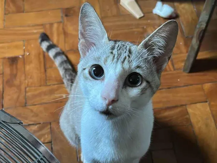esse serzinho lindo dos olhos mais azuis do mundo é o Zé!ele apareceu aqui no condomínio do meu prédio super magrinho, cheio de pulgas e todo sujo mas agora ele é um novo gato!limpinho, sem pulgas e cada vez mais barrigudinho hahahhahao Zé é extremamente carinhoso, dócil e brincalhão, o que me leva a crer que ele, provavelmente, fugiu de casa e não soube voltar com certeza ele era de alguém pq gato de rua não é manso assim…enfim! estou procurando uma família amorosa e com proteção contra rotas de fuga para ele chamar de lar!o Zé testou negativo pra FIV/FELV e tem por volta de 1 aninho, segundo a vetme ajudem a encontrar uma casinha pra ele?!ele tá super pronto pro amor!!!