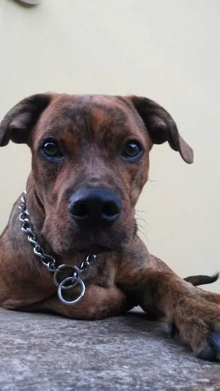 Encontrei o "figura'' na madrugada pelas ruas aqui da cidade,,,, Com menos de 1 mês, cheio de carrapatos e magrinho... cuidamos e tratamos como um Rei. Hoje, aos 7 meses esta cursando há 3 o adestrador, para ir criando bom comportamento. Porém ele está na casa dos meus pais, e logo mais estou casando e mudando para um apartamento que não cabe um dog como esse, e aqui em casa não tem jeito, meu pai está decidido que não quer ficar com o dog , sem eu morando aqui... Preciso logo achar um outro lar para o Querido Wilson, de coração cortado, mas não tem outra saída. Tenho inúmeras fotos para envio .