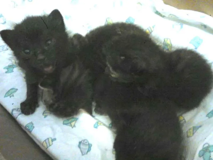 Deixaram 4 gatinhos na porta da minha casa, estou procurando uma nova familia pra eles, tem dois pretos e dois rajadinhos.