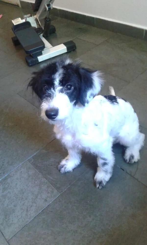 Kiara é preto e branca, porte médio e filha de uma mestiça Lhasa com vira lata ambos porte médio. Uma ternura, tomou todas as vacinas inclusive a rábica. Começou ser adestrada vez que assenta-se sozinha, a pelagem é brilhosa. Não poderei ficar com ela e Jhony (tb. postado neste) porque estou com enfisema pulmonar e nódulo pulmonar. Produtos de higiene e pelo de cachorro me atacam sobremaneira. Ambos são bem criados com todo amor e carinho. Gostaria de um dono tal qual como sou a eles. Jhony tem quatro meses. Já está na segunda vacina, só falta uma. Tomou tb. a rábica. É tb. preto e branco filho de Poodle e Vira Lata, porte médio (tanto o pai dele quanto a mãe os são médio). É doce e calmo sobremaneira. Se conseguisse que ambos fosse para o mesmo dono seria uma benção. Moro em apto. pequeno e eles acabam por ficarem sem espaço necessário. São mega parceiros um do outro. Kiara com um ano o adotou.