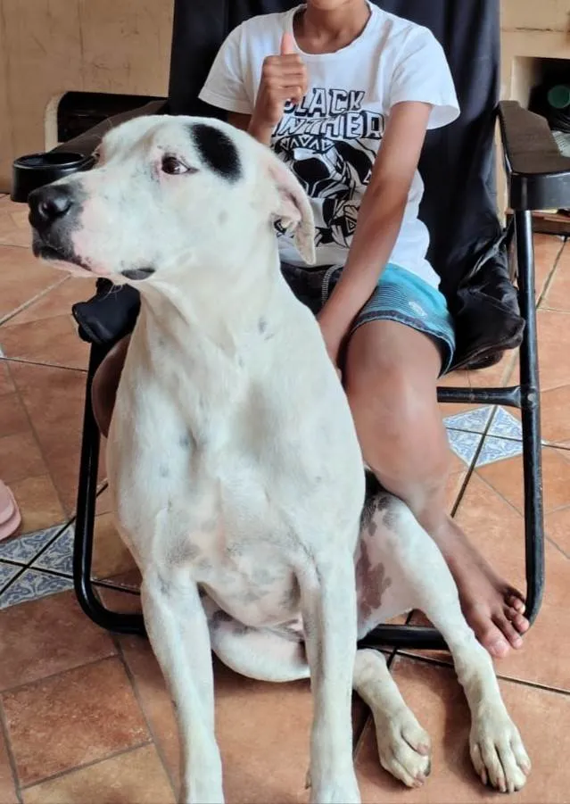 Scott é um lindo cão da raça SRD-ViraLata, de pelagem branca e porte grande, com 3 anos de idade. Ele é um cachorro maravilhoso, muito brincalhão e amoroso. Scott já está castrado, vacinado e vermifugado, pronto para encontrar um novo lar que lhe ofereça o carinho que tanto merece. Seu temperamento é extremamente dócil e sociável, convivendo super bem com outros cães, gatos e até com crianças. É um ótimo companheiro para idosos e aceita bem desconhecidos. Além disso, ele já demonstrou grande capacidade de conviver pacificamente com galinhas, mostrando sua natureza amigável. Scott está atualmente morando na casa do meu ex-sogro, pois não tenho mais espaço para trazê-lo para minha nova residência. Ele se adaptaria melhor em uma casa com quintal, onde possa gastar sua energia e continuar a exercer sua personalidade brincalhona. Se você está procurando um novo amigo leal e cheio de amor para compartilhar, Scott será a companhia ideal. Dê a ele a chance de fazer parte da sua família!