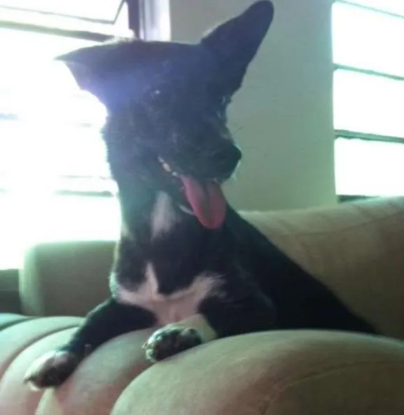 Cachorra vira-lata super dócil com pelagem preta e rajados dourados, possui peito e patas brancas , problema na orelha ou seja apenas uma orelha se levanta. Qualquer noticia me contatar dono doente.