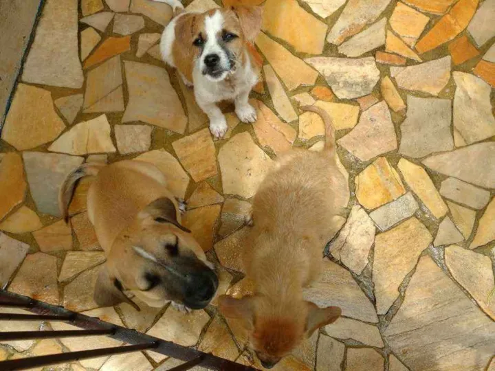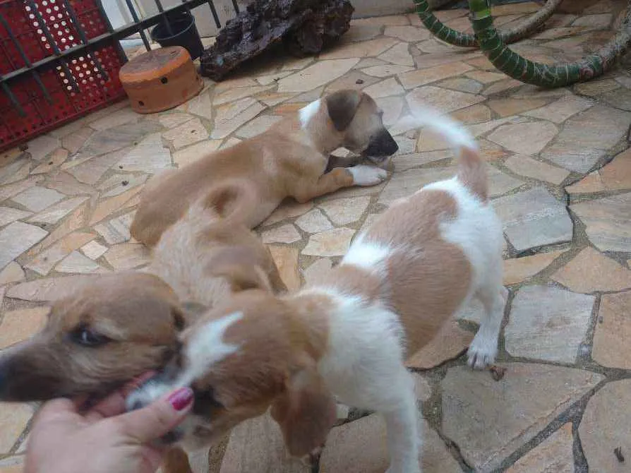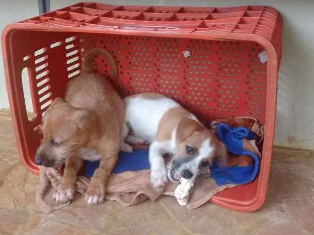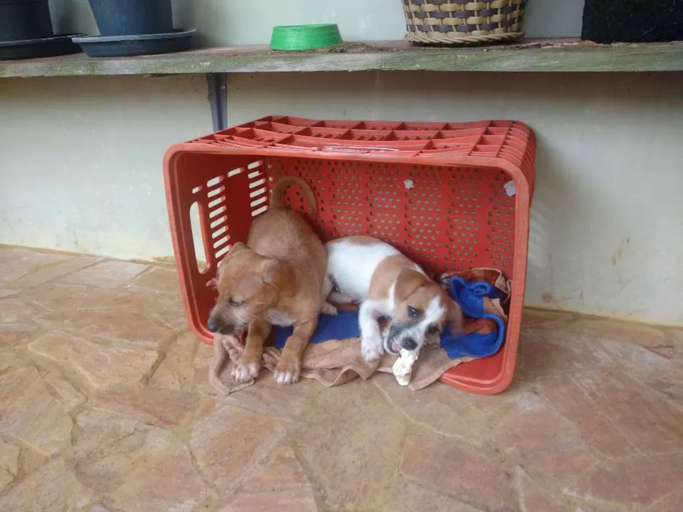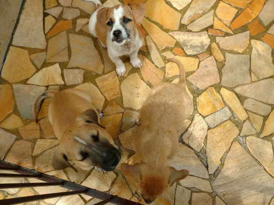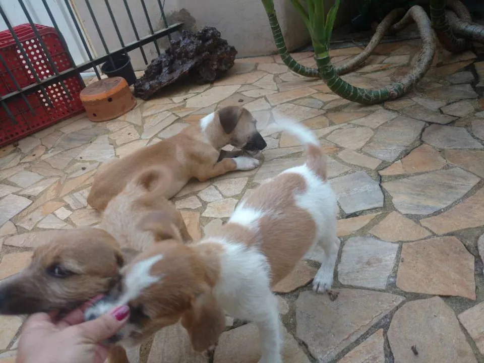 Encontrei três filhotes de cachorro abandonados na estrada e peguei para tentar doar, fiquei com muito dó de ver e não pude deixá-los lá, preciso achar pessoas que quiram. Não sei se são de raça e nem que tamanho podem ficar. Tem 02 femeas e 1 macho