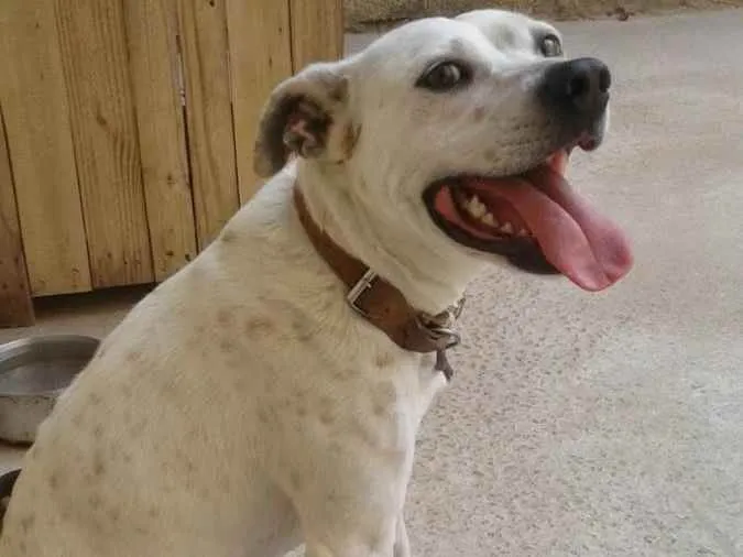 Lucky é um cachorro muito amoroso e que tem muita energia para brincar! Ele é uma mistura de vira-lata com pitbull.