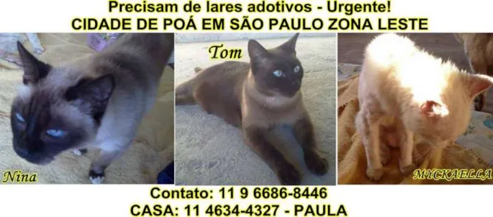 PRECISO DOAR OS 3 GATOS,C/URGÊNCIA PQ ESTOU DE MUDAÇA PRA MINAS GERAIS E Ñ TEM COMO EU OS LEVAR,PQ VOU DE ÔNIBUS E A VIAJEM É SUPER LONGA,VOU SAIR EM UM DIA PELA MANHÃ E SÓ VOU CHEGAR NO OUTRO DIA QUASE NA HORA DO ALMOÇO!POR ISSO PRECISO FAZER ESSA DOAÇÃO!SE EU PUDECE LEVARIA ELES COMIGO,PQ AMO ELES DE MAIS!