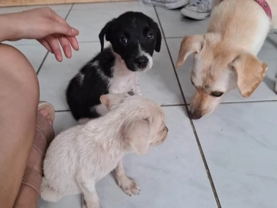 5 filhotinhos, mãe e pai porte médio