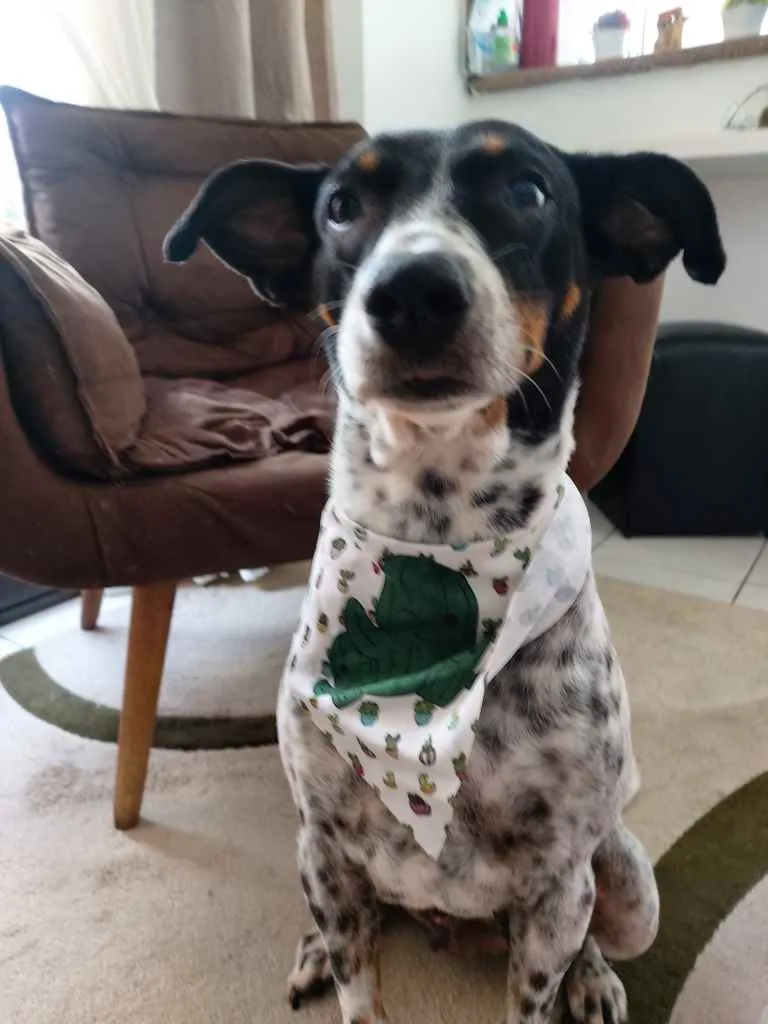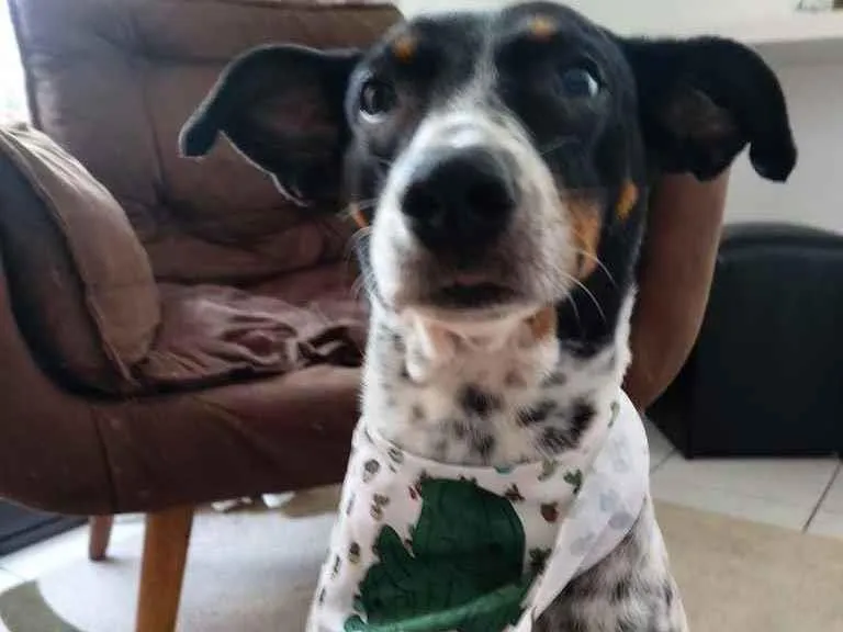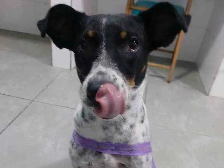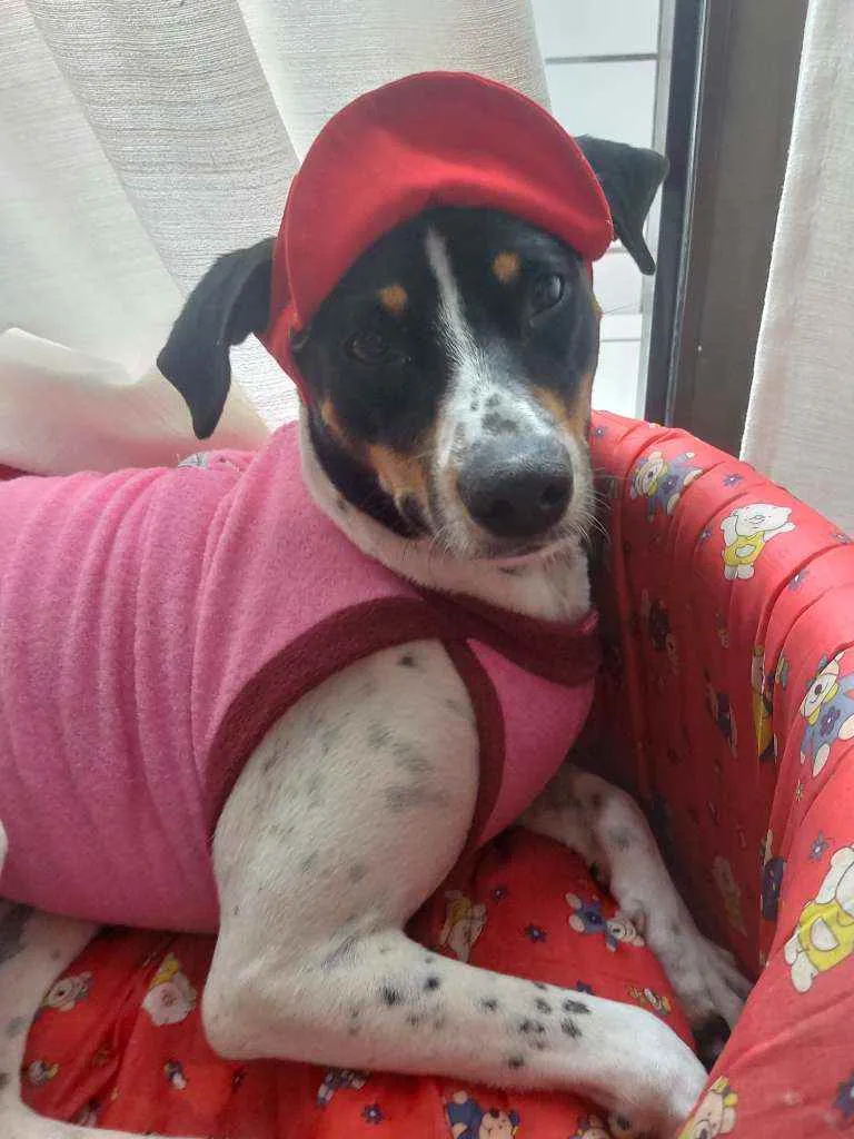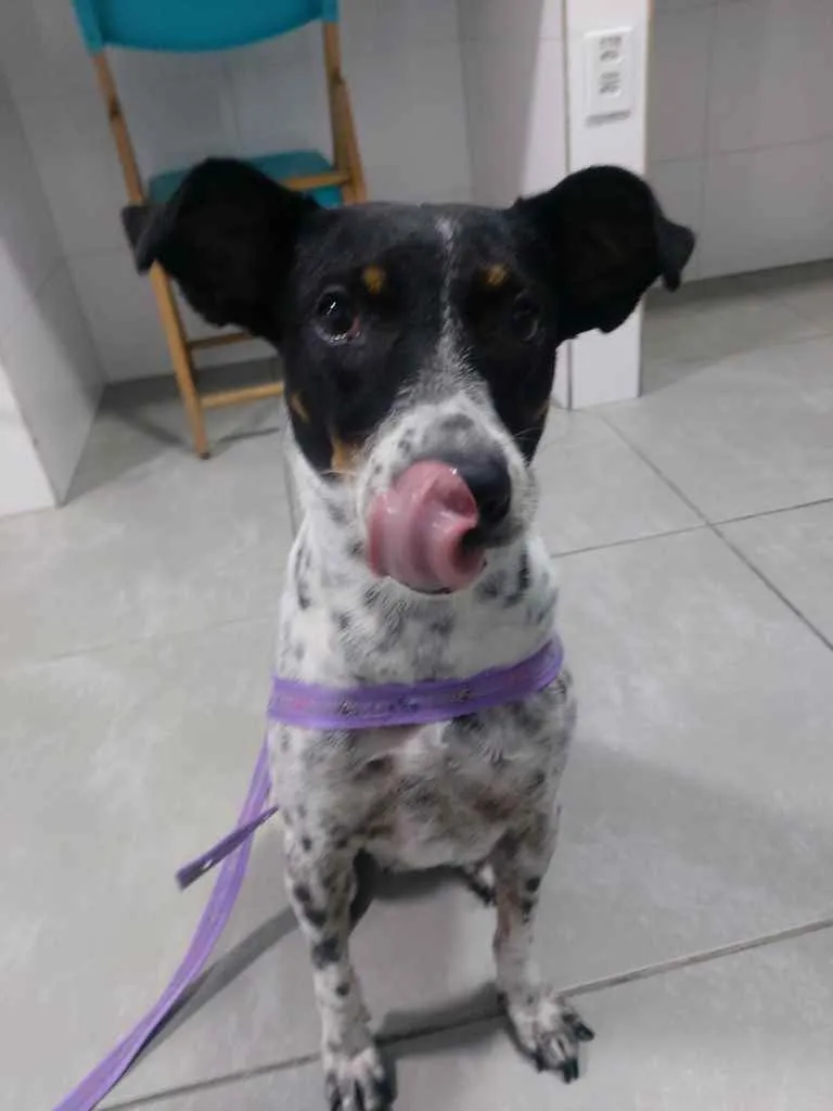 Encontrada sozinha na cidade de Mongagua debilitada muito magrinha ... me chamou a atenção o rabinho feliz e um sorrisao no rosto ( isso mesmo ela sorri rs )