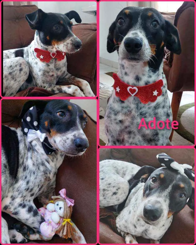 Tem por volta de uns 3 aninhos, castrada e Vacinada...muito, mais muito feliz mesmo carinhosa ..ela merece uma família especial...?